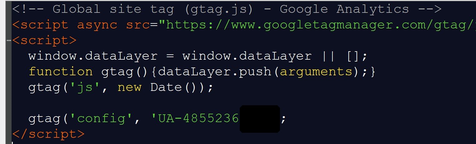 I kildekoden findes mange forskellige koder (typisk scripts), som du som bruger IKKE normalt ser. Her er et eksempel på en af mine nu slettede Analytics scripts til en af mine hjemmesider.